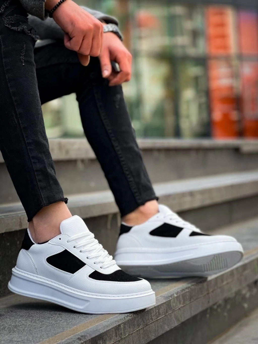 KB-X8 Kuback Beyaz Siyah Cilt Yüksek Taban Günlük Spor Ayakkabı