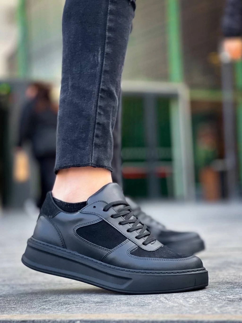 KB-X8 Kuback Siyah Cilt Siyah Süet Detaylı Siyah Yüksek Taban Günlük Spor Ayakkabı