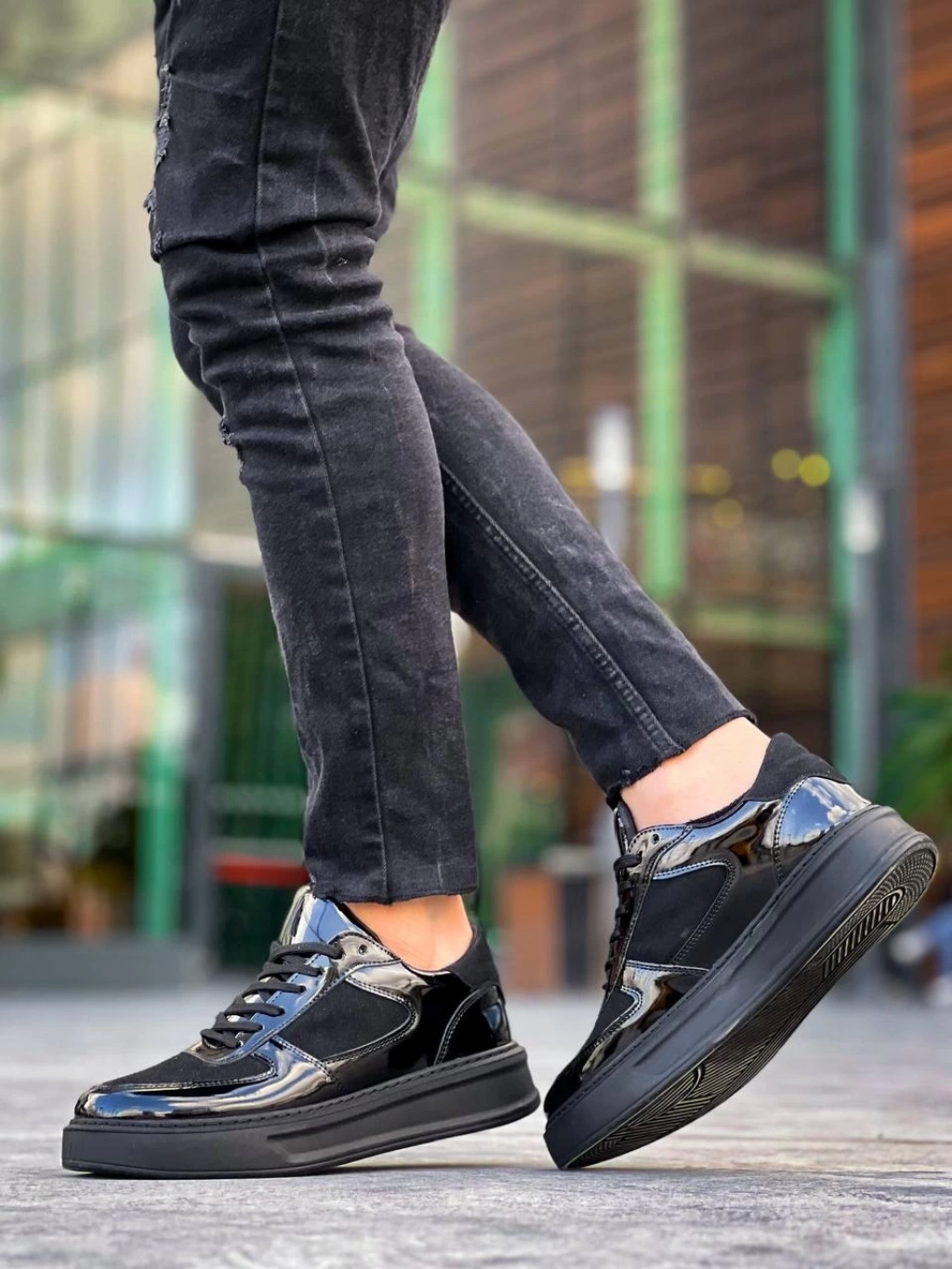KB-X8 Kuback Siyah Rugan Yüksek Siyah Taban Günlük Spor Ayakkabı