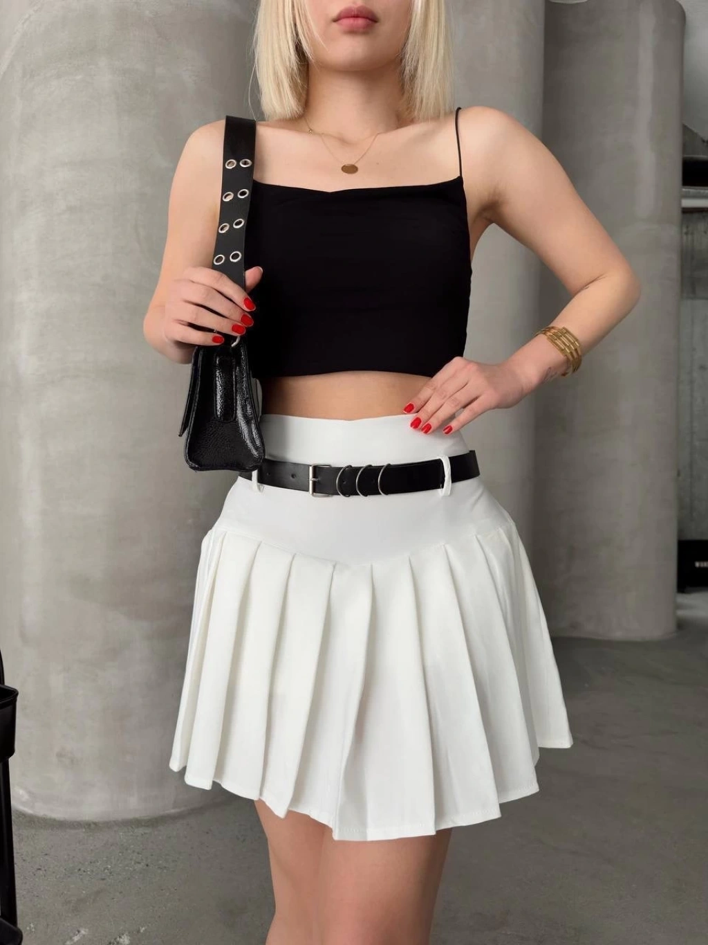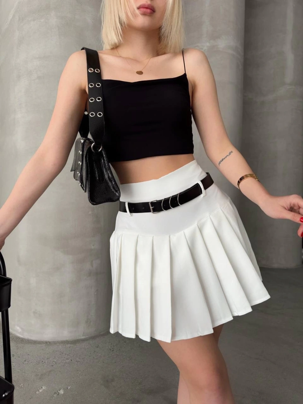 İki düğmeli şort ch kumaş etek ekoseli siyahbeyaz h26414