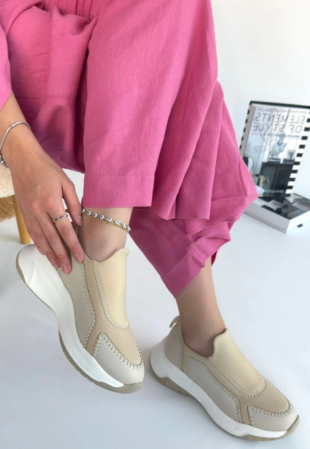 Ranu Platin Cilt Paraşüt Detaylı Bağcıklı Spor Ayakkabı