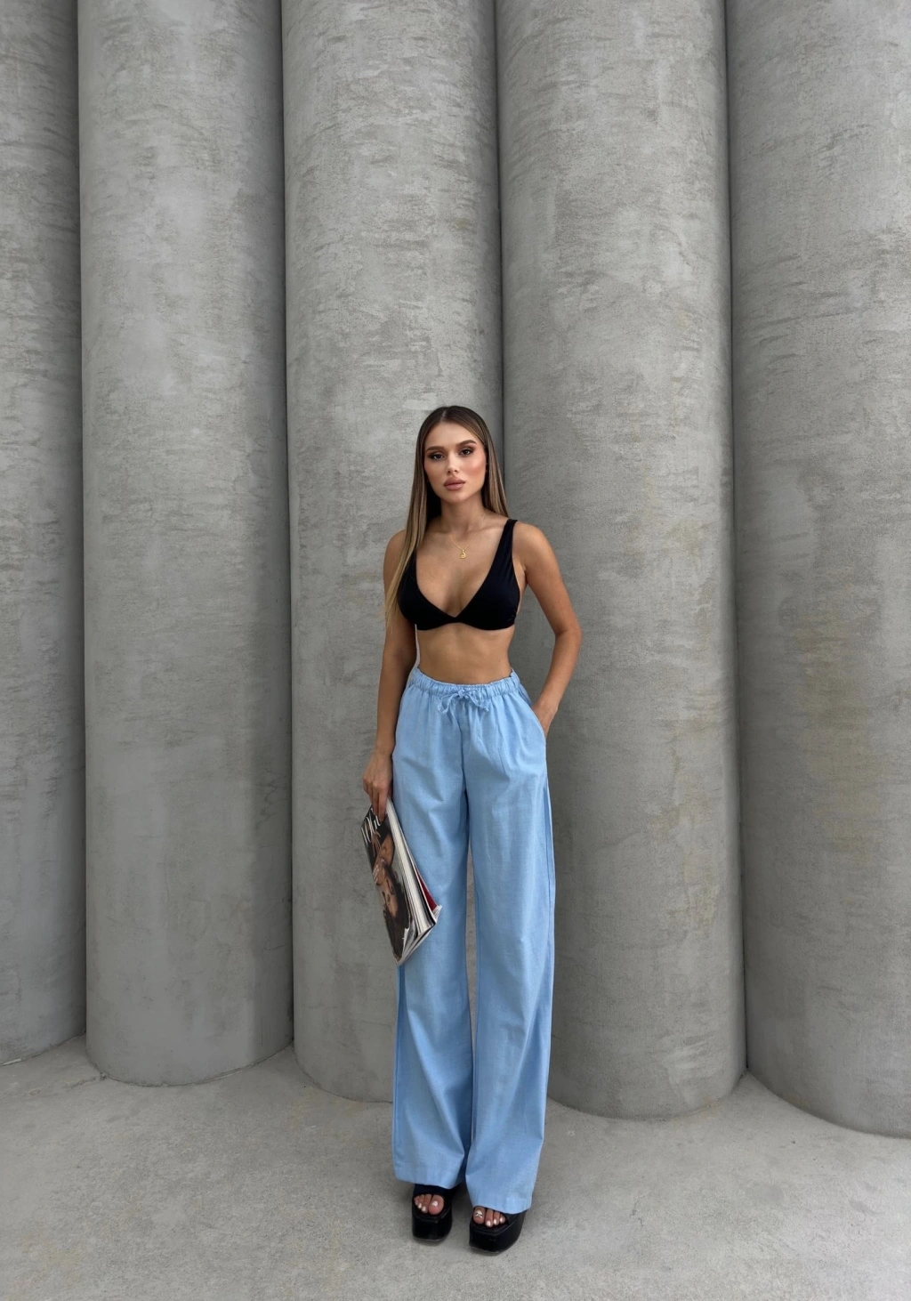 Palazzo bıyık kar yıkama buz mavi jeans pantolon d2008