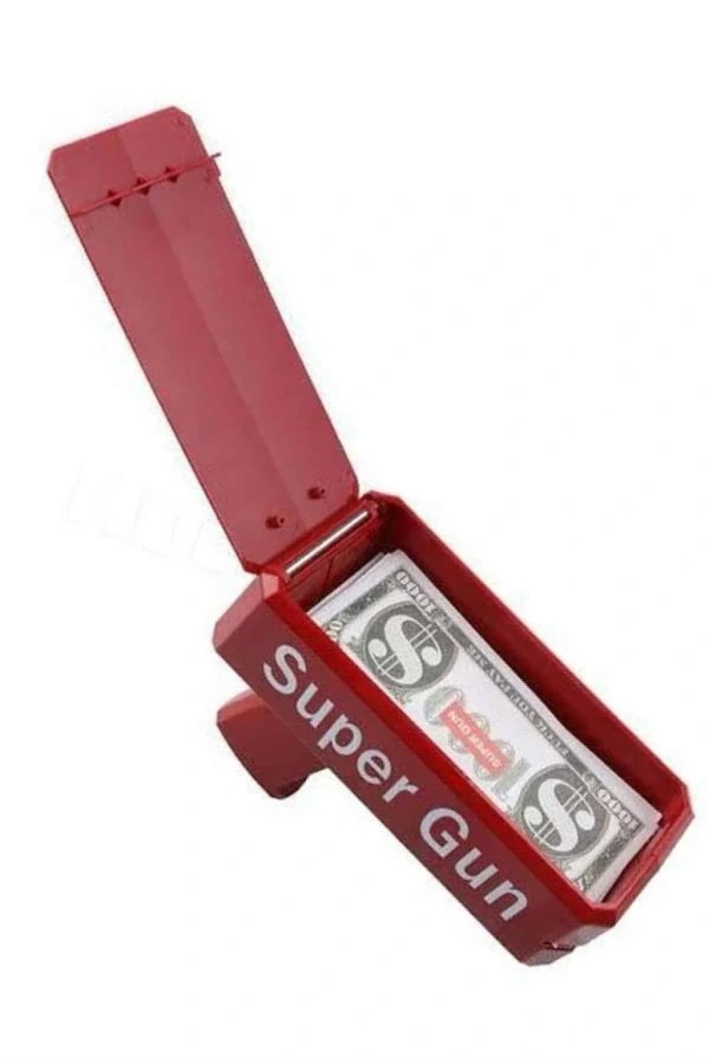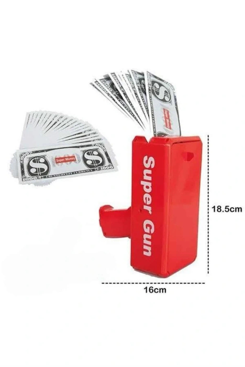 Kırmızı Parti Oyuncağı Para Saçma Fırlatma Tabancası Makinesi Super Money