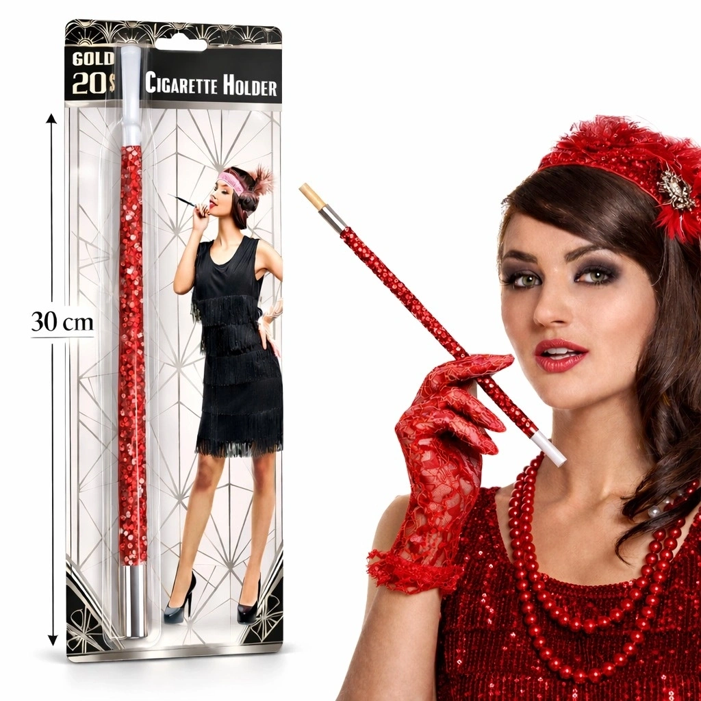 30 Cm Kırmızı Payetli Tutacağı – 1920’ler Gatsby Parti Aksesuarı