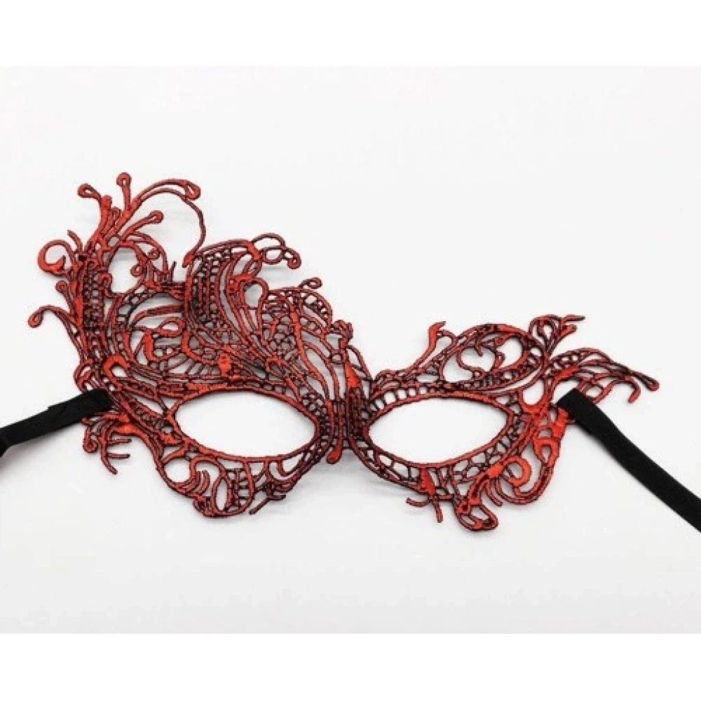 Kırmızı Renk Dantel Örgü İşlemeli Parti Maskesi Model 1