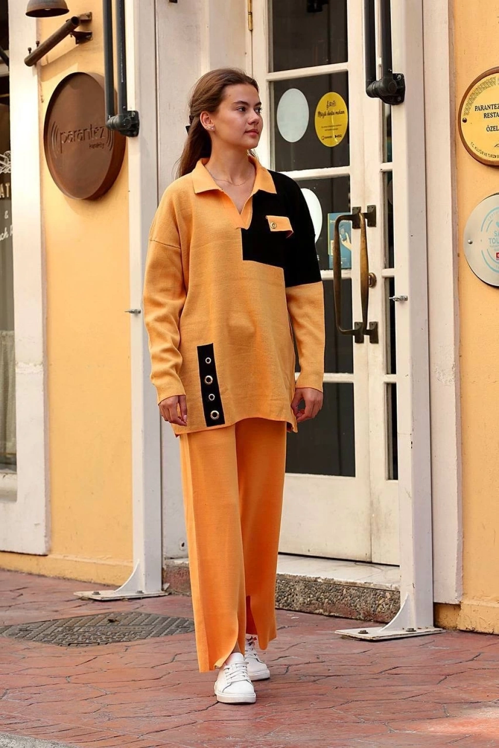 Gömlek Yaka Fitilli Salaş İkili Takım siyah T4300