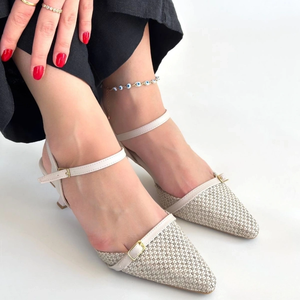 Weys Bej Rugan Topuklu Ayakkabı