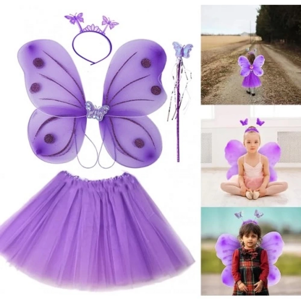 Lila Mor Kelebek Kostümü 4 Parça Set