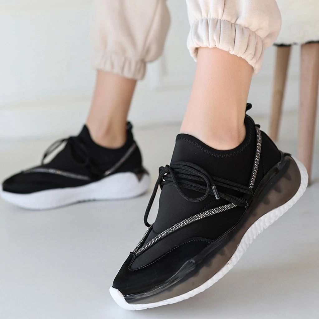 Ranu Siyah Cilt Paraşüt Detaylı Bağcıklı Spor Ayakkabı