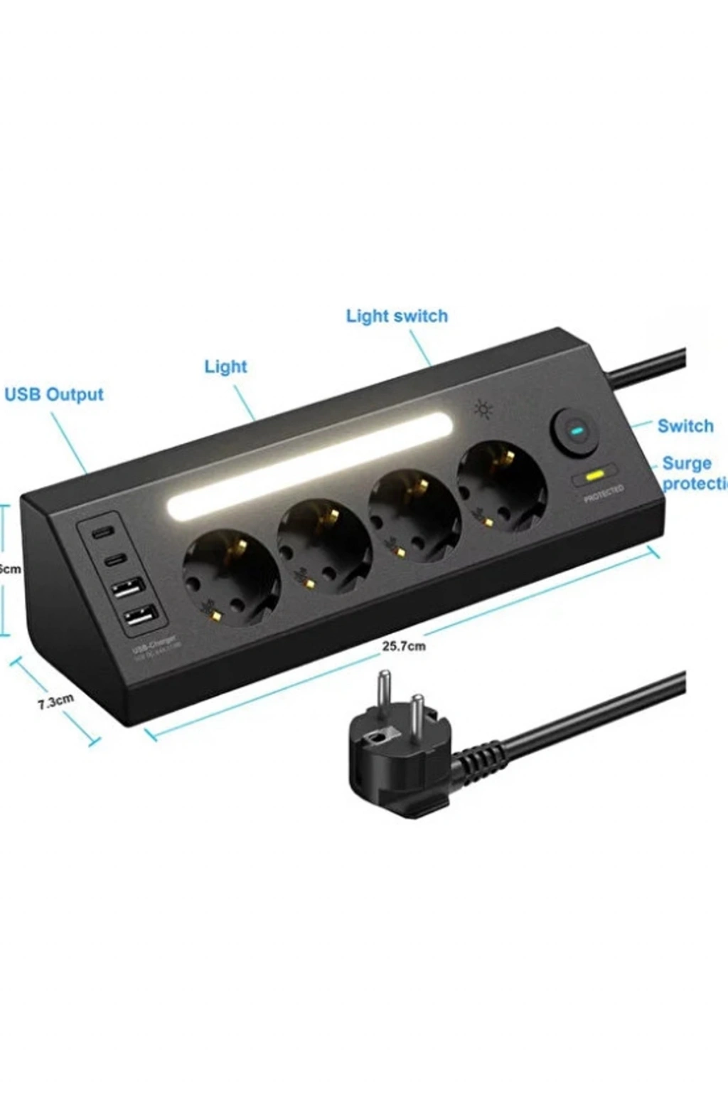 P10 3x Priz 3000w Akım Korumalı 4x Usb 2x Type-c Girişli Çoklu Priz