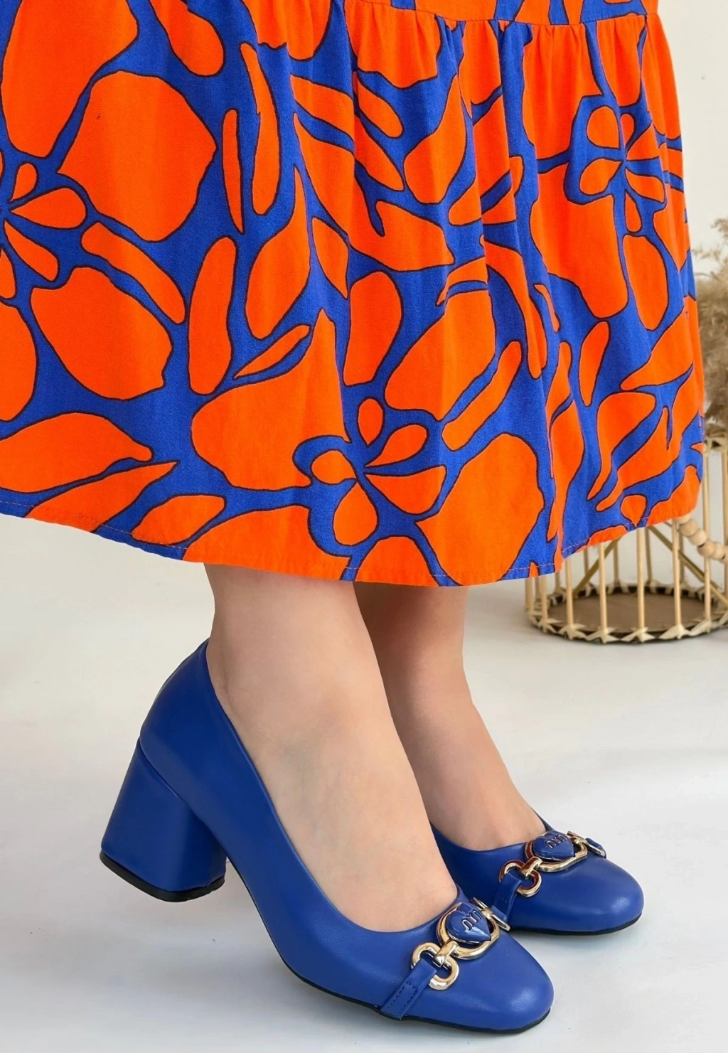 Lucky Mavi Cilt Topuklu Ayakkabı