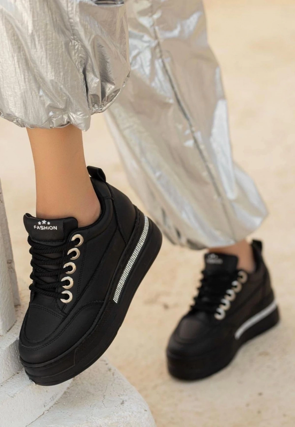 Cata Siyah Cilt Beyaz Detaylı Spor Ayakkabı