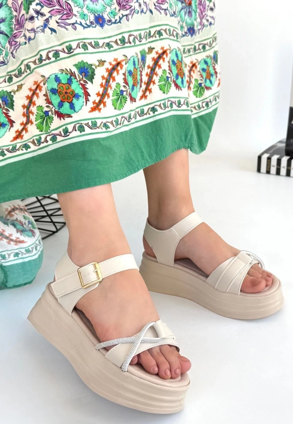 Sinna Gümüş Cilt Tül Detaylı Sandalet
