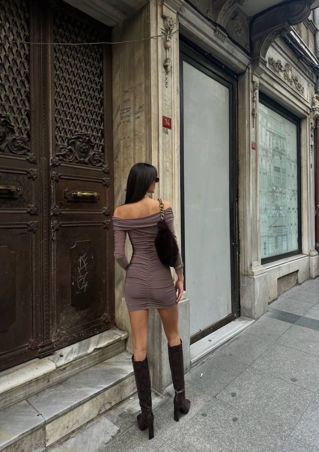 Madonna yaka elbise