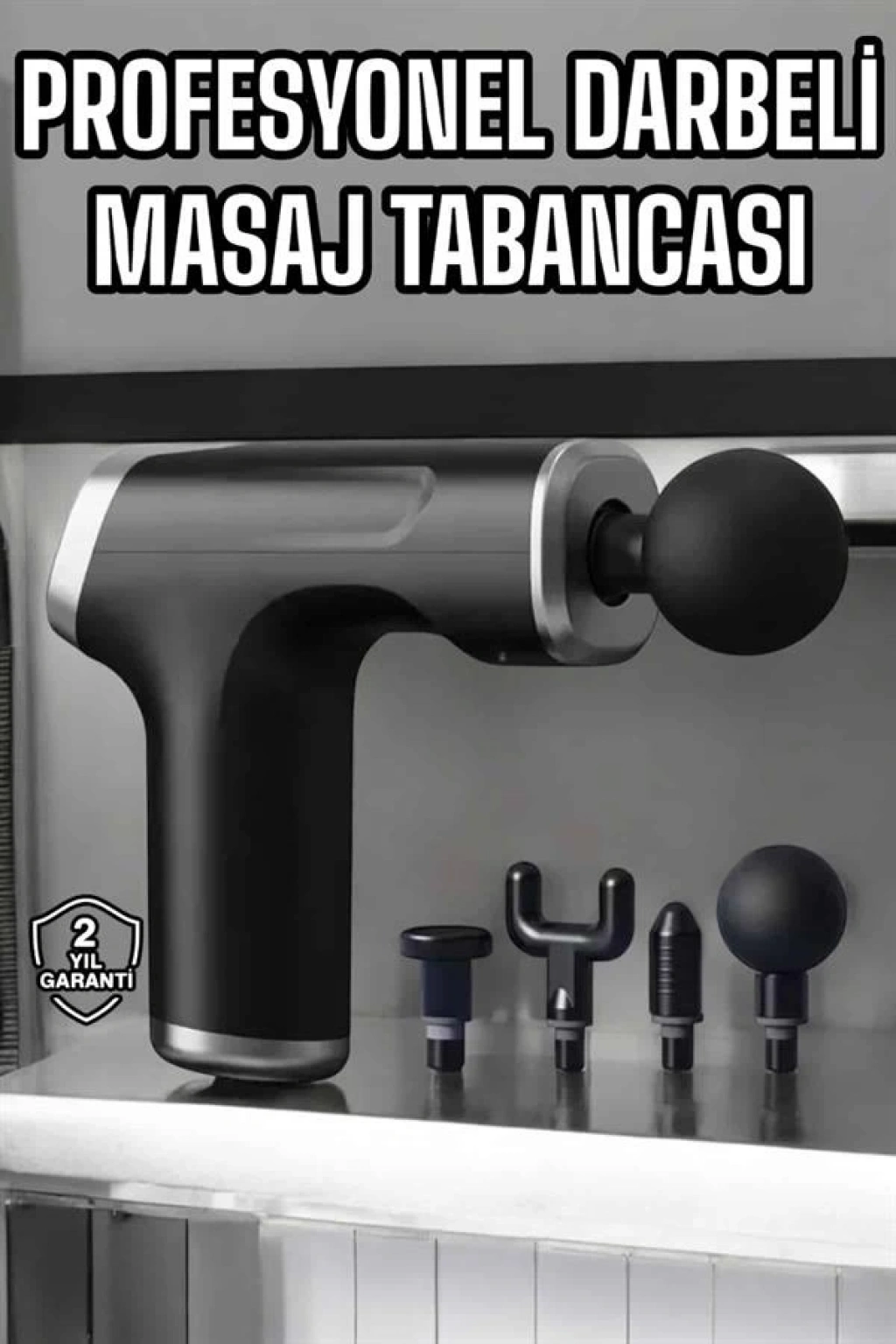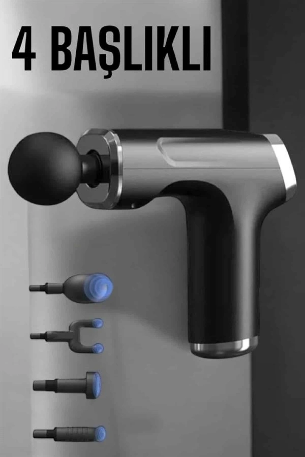 Masaj Tabancası 4 Başlıklı Kas ve Vücut Ağrıları İçin Şarjlı Darbeli