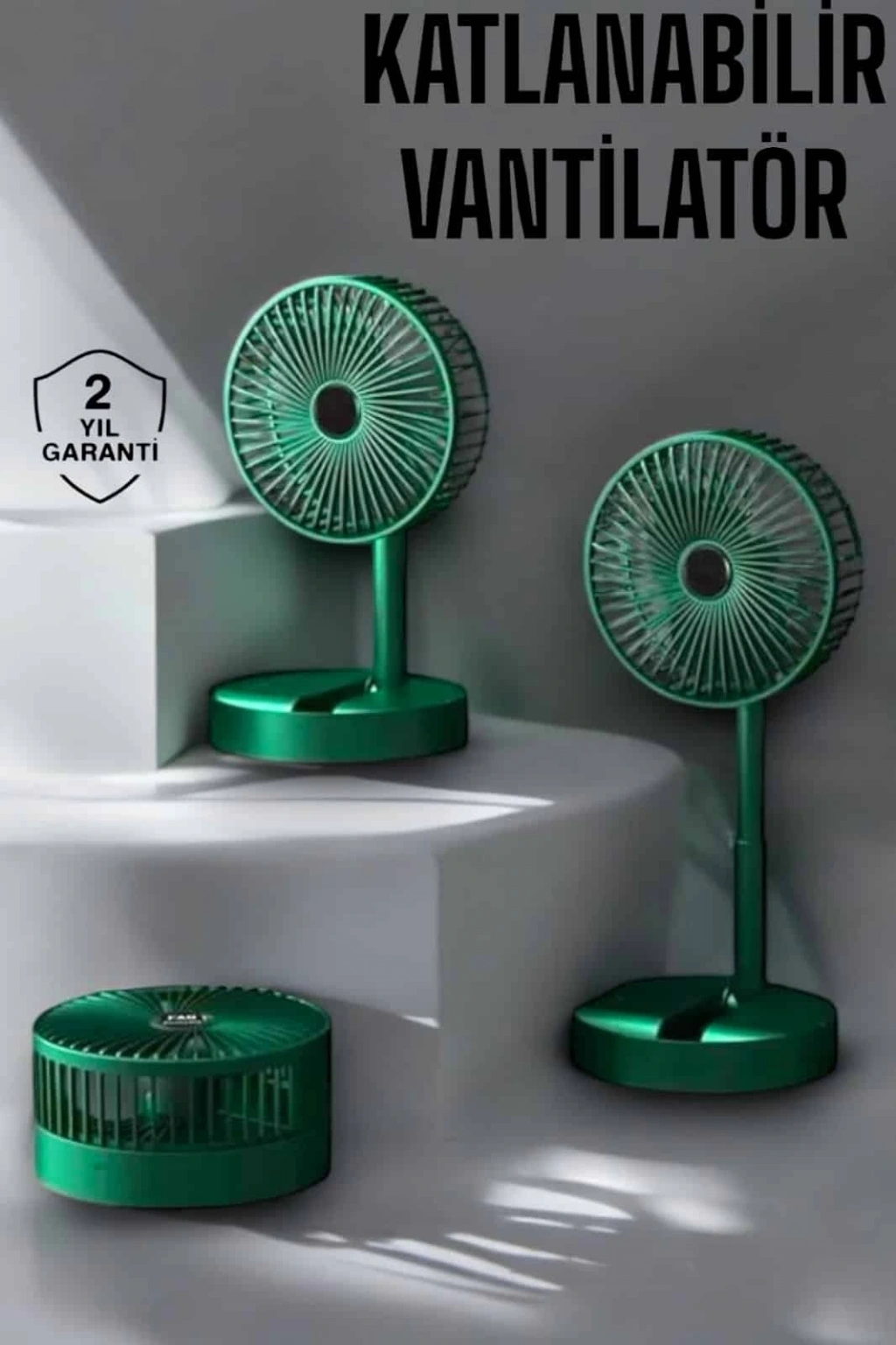 Şarjlı Katlanabilir Mini Fan – 3 Kademe Hız Ayarı, Taşınabilir Tasarım