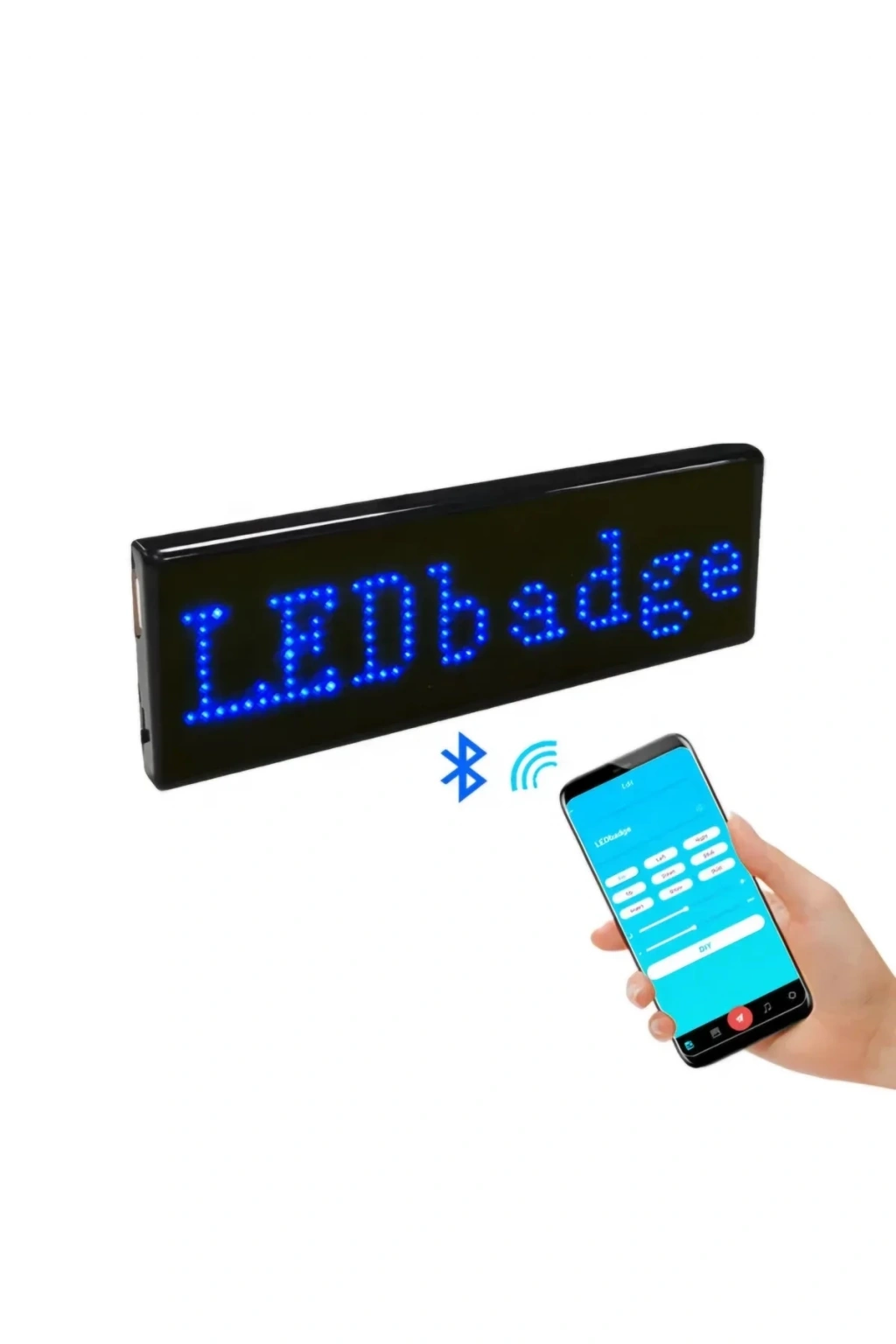 Matrix Kayan Led Yaka Rozeti Mobil Kontrollü Dijital Etiket 9×3cm