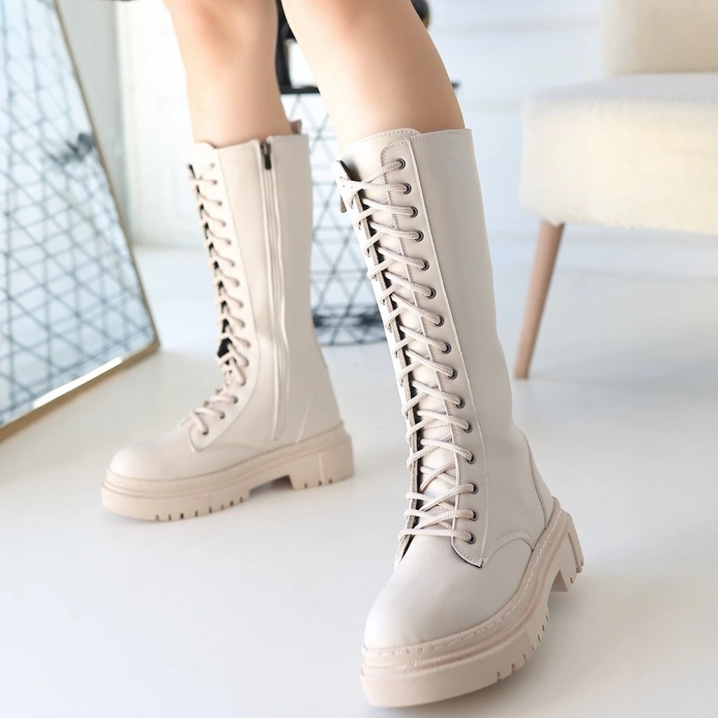 Roksa Acı Kahvei Cilt Topuklu Çizme