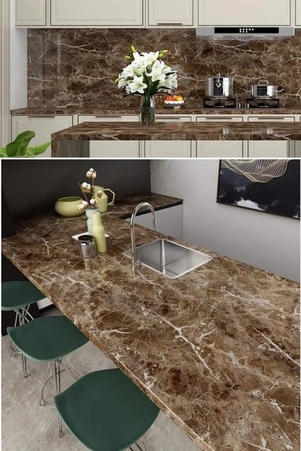 Mermer Desenli Masa Tezgah Mutfak Su Geçirmez Yapışkanlı Folyo Sticker Kahverengi 5x0,6m