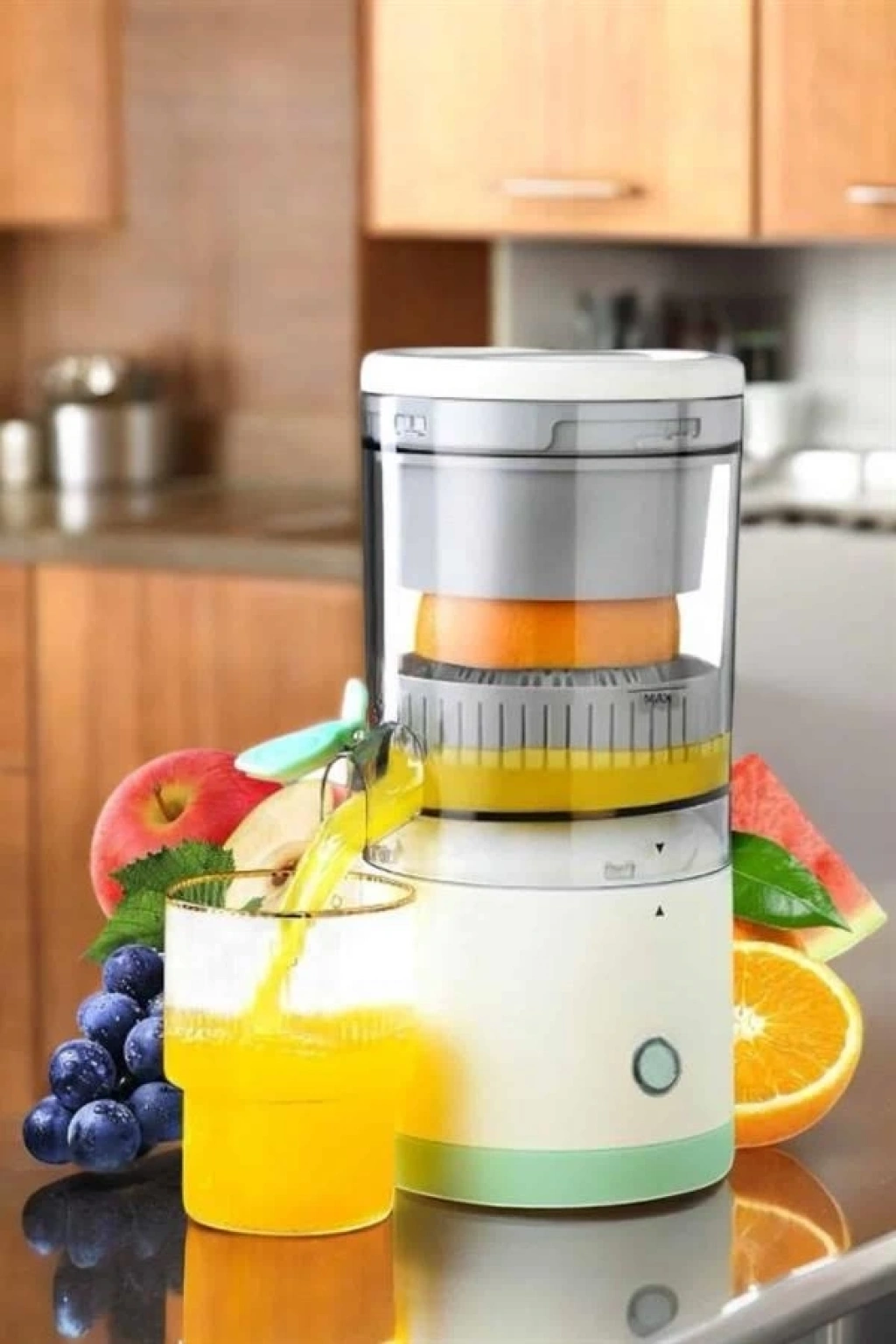Taşınabilir Katı Meyve Sıkacağı – 45W Güçlü Motor, Çift Kesici Bıçak, USB Şarjlı ve Kompakt Tasarım