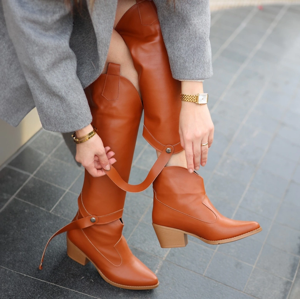 Jeoli Kahverengi Cilt Topuklu Çizme