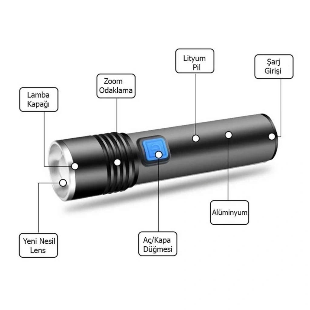 Alüminyum Şarjlı Zoom'lu El Feneri F6055