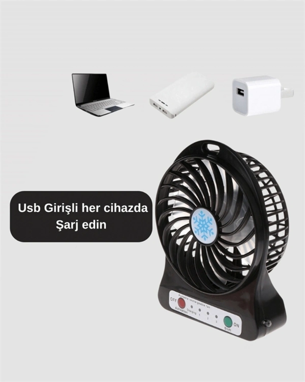 USB Girişli Taşınabilir Masaüstü Mini Fan – 3 Kademeli Hız, Şarjlı, Işıklı, Sessiz Çalışma