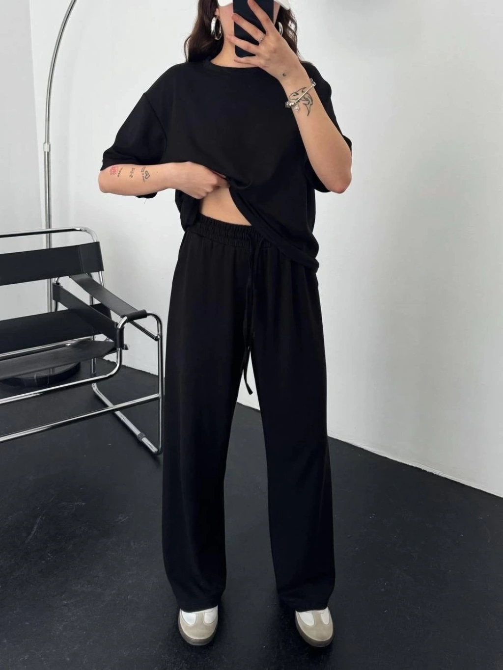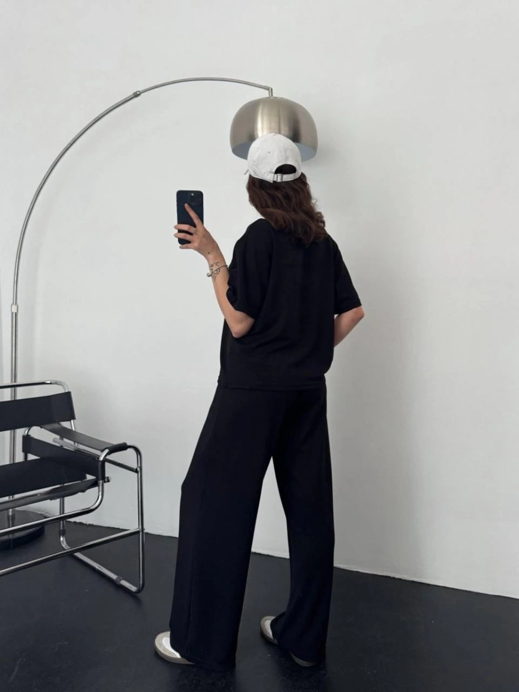 Gömlek Yaka Fitilli Salaş İkili Takım siyah T4300