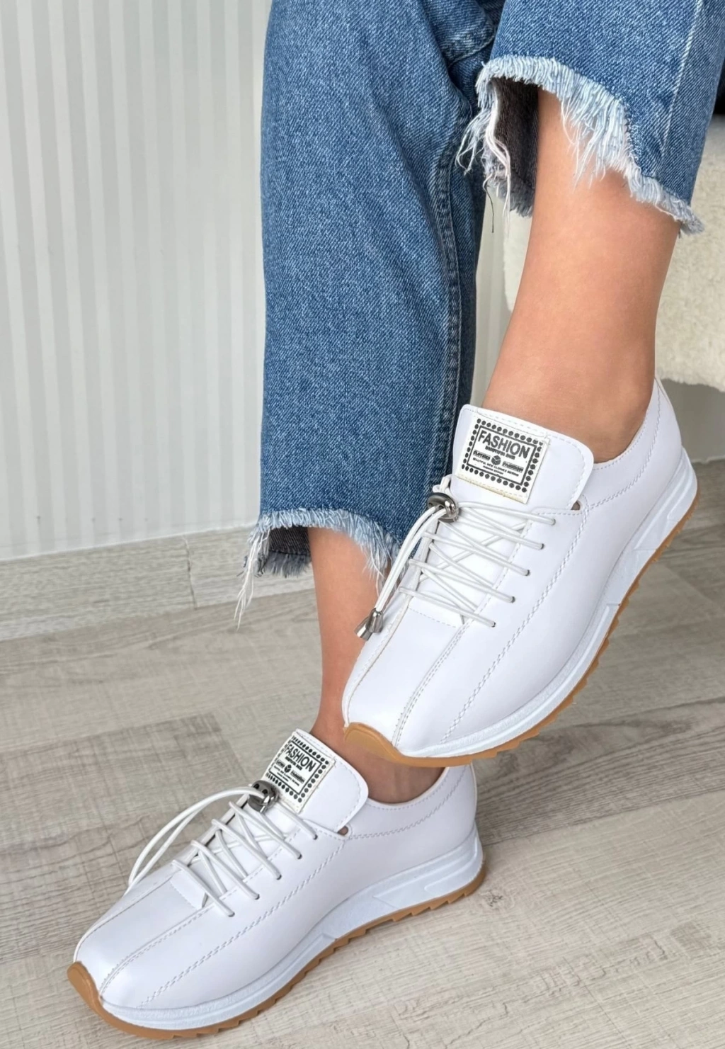 Monya Beyaz Cilt Bağcıklı Spor Ayakkabı