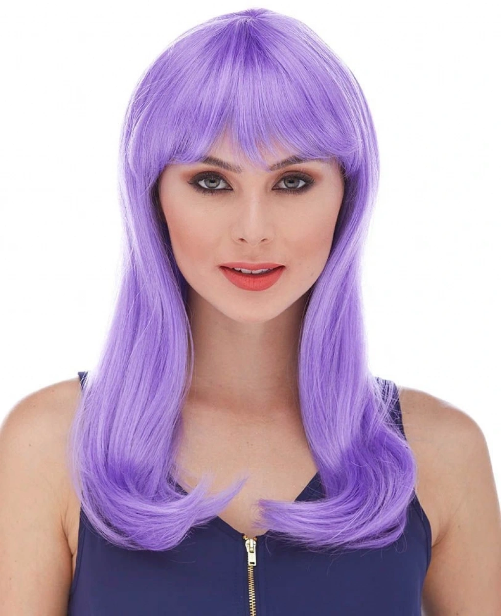 Mor Renk Uzun Düz Parti Peruğu (5047)