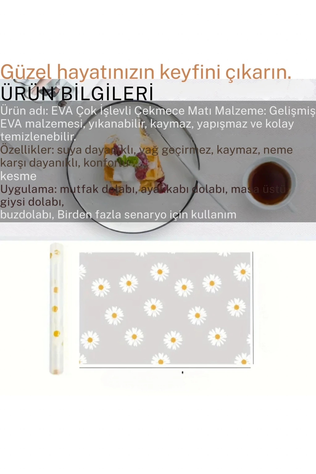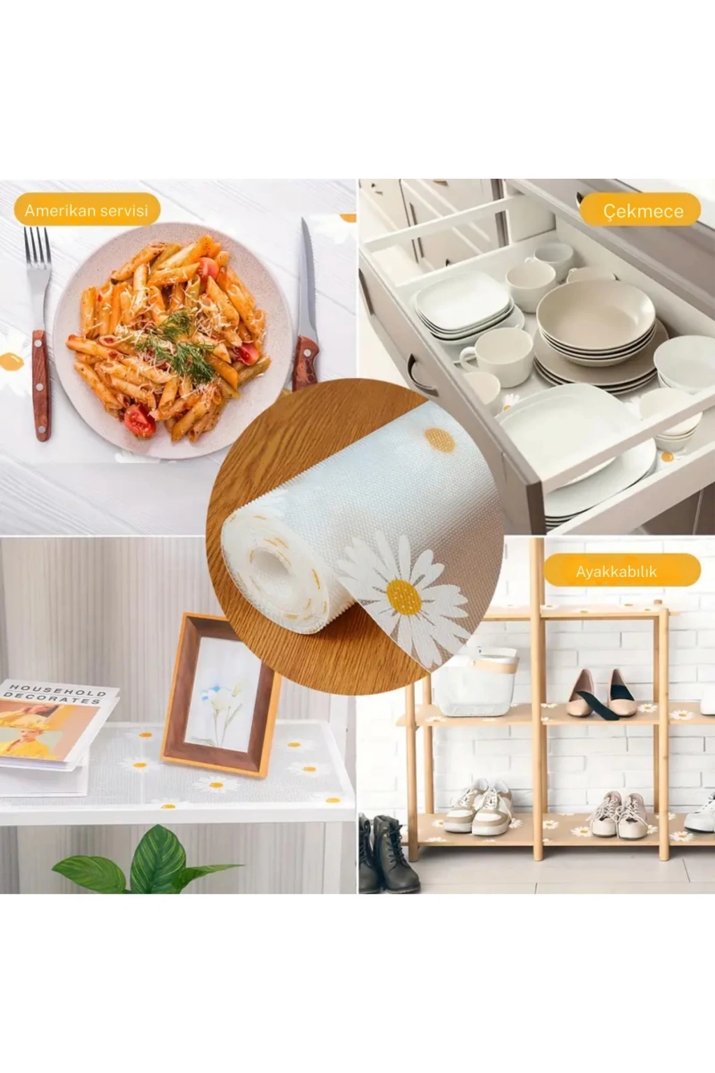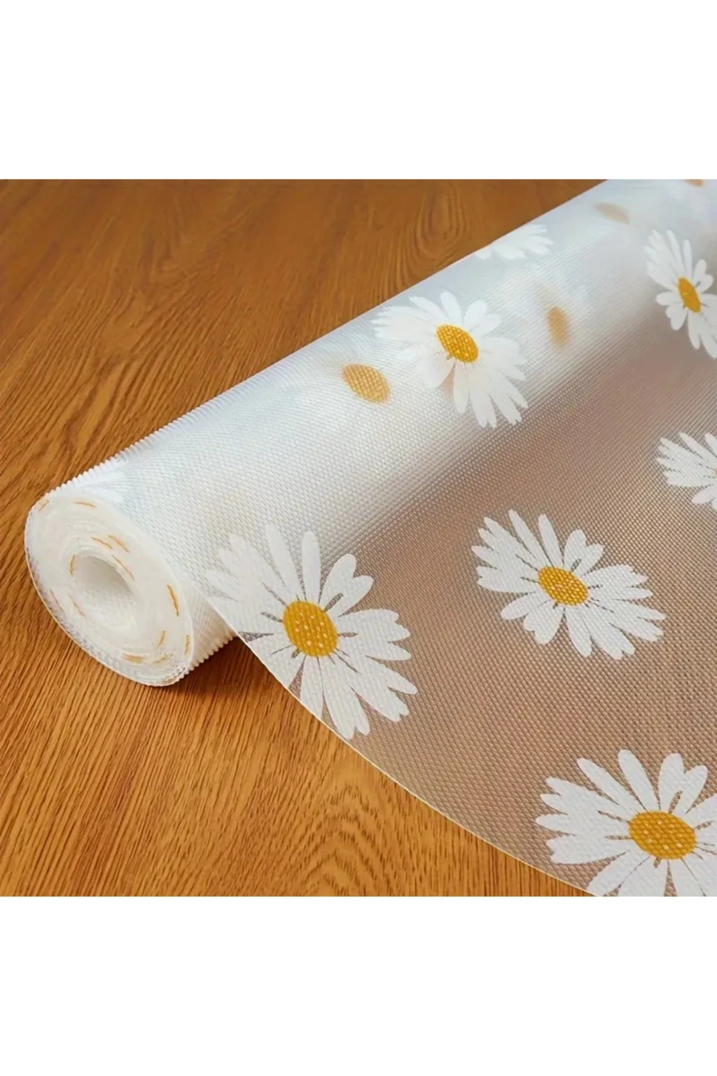 Mutfak Eva Shelf Liner Şeffaf Astar Kaymaz Dolap İçi Çekmece Örtüsü Papatya Desen Mat 45cmx10 Metre