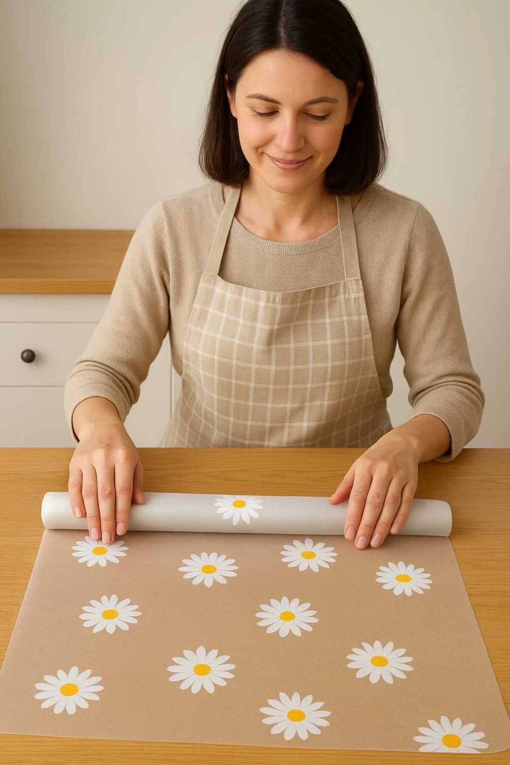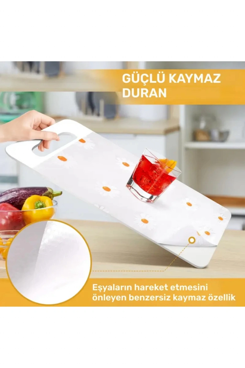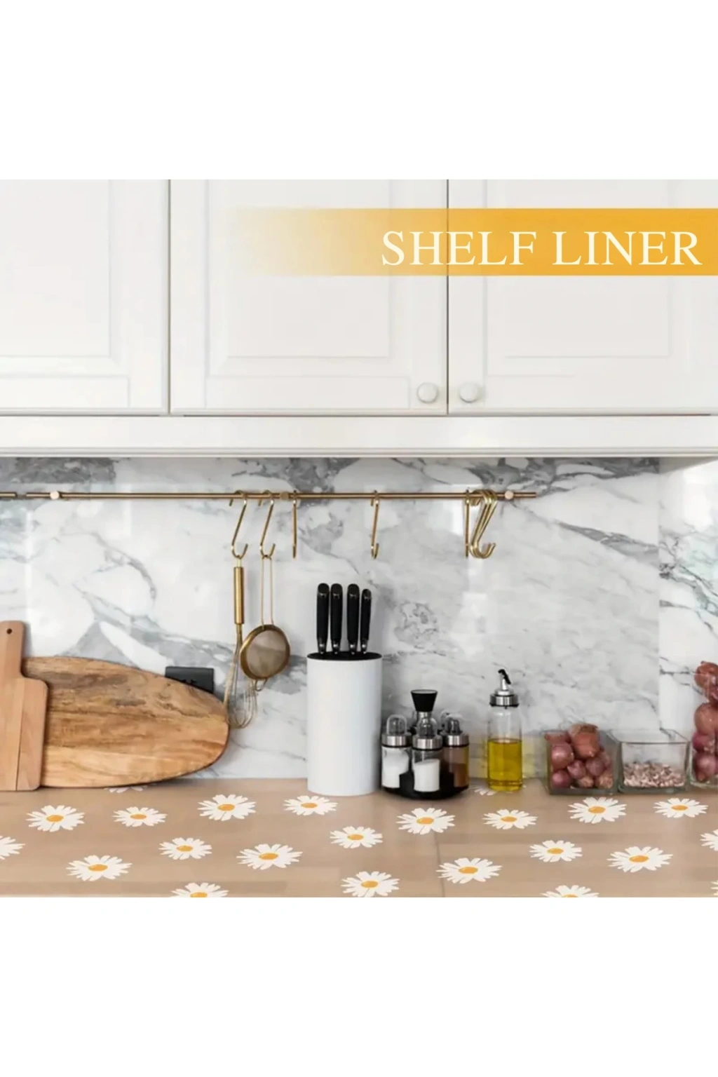 Mutfak Eva Shelf Liner Şeffaf Astar Kaymaz Dolap İçi Çekmece Örtüsü Papatya Desen Mat 45cmx10 Metre