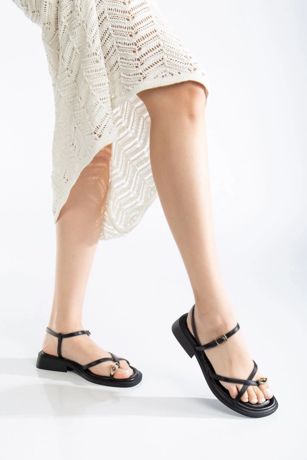 Nordi Siyah Cilt Kemerli Sandalet