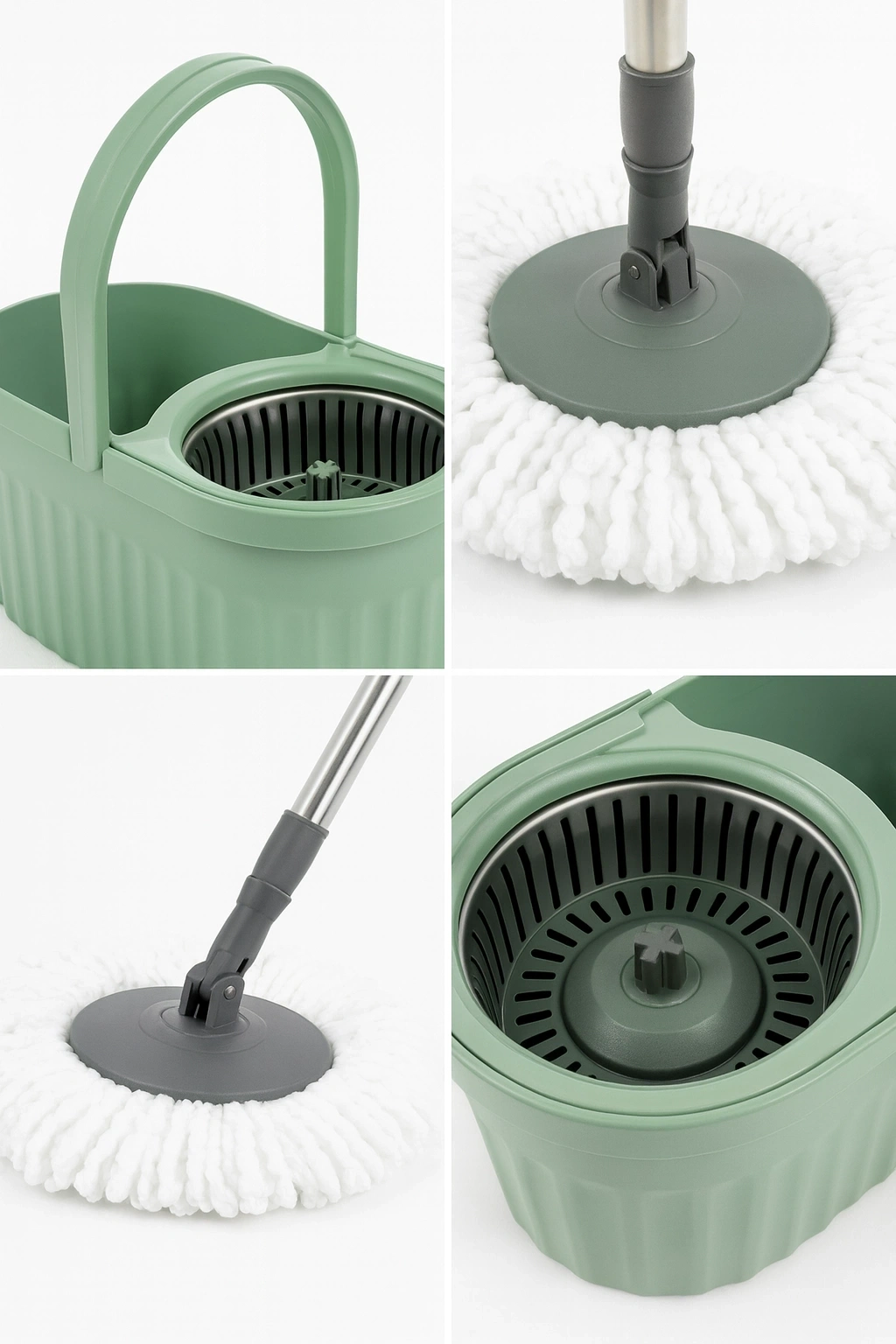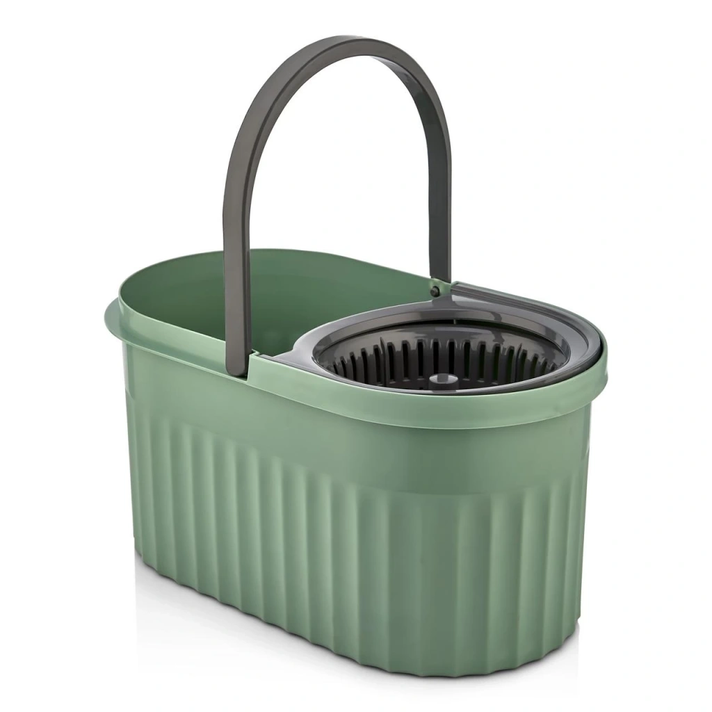 Otomatik Mop Seti Paspas ve Sıkma Kovası, 360° Döner Başlıklı Mikrofiber Yer Temizleme Yeşil