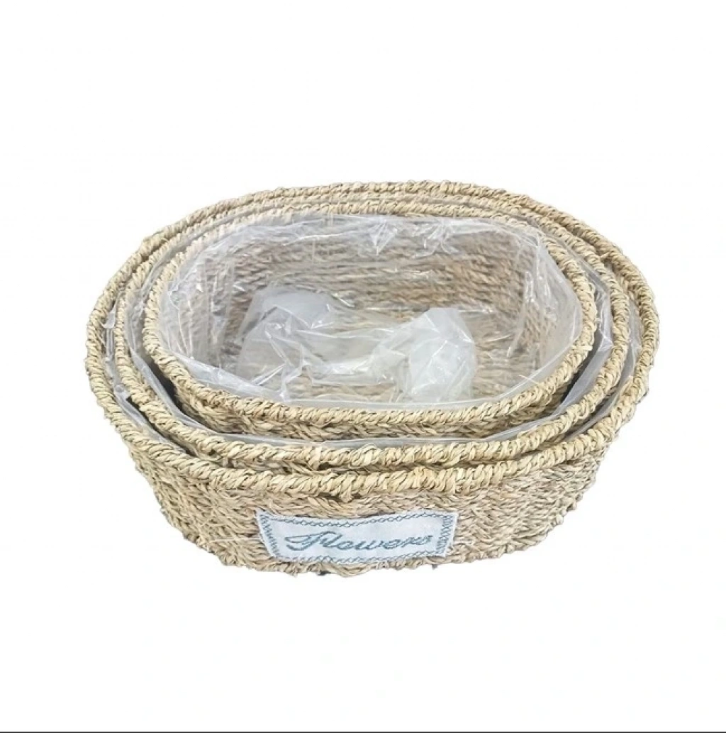 Oval Doğal Hasır Saksı Seti - 3'lü