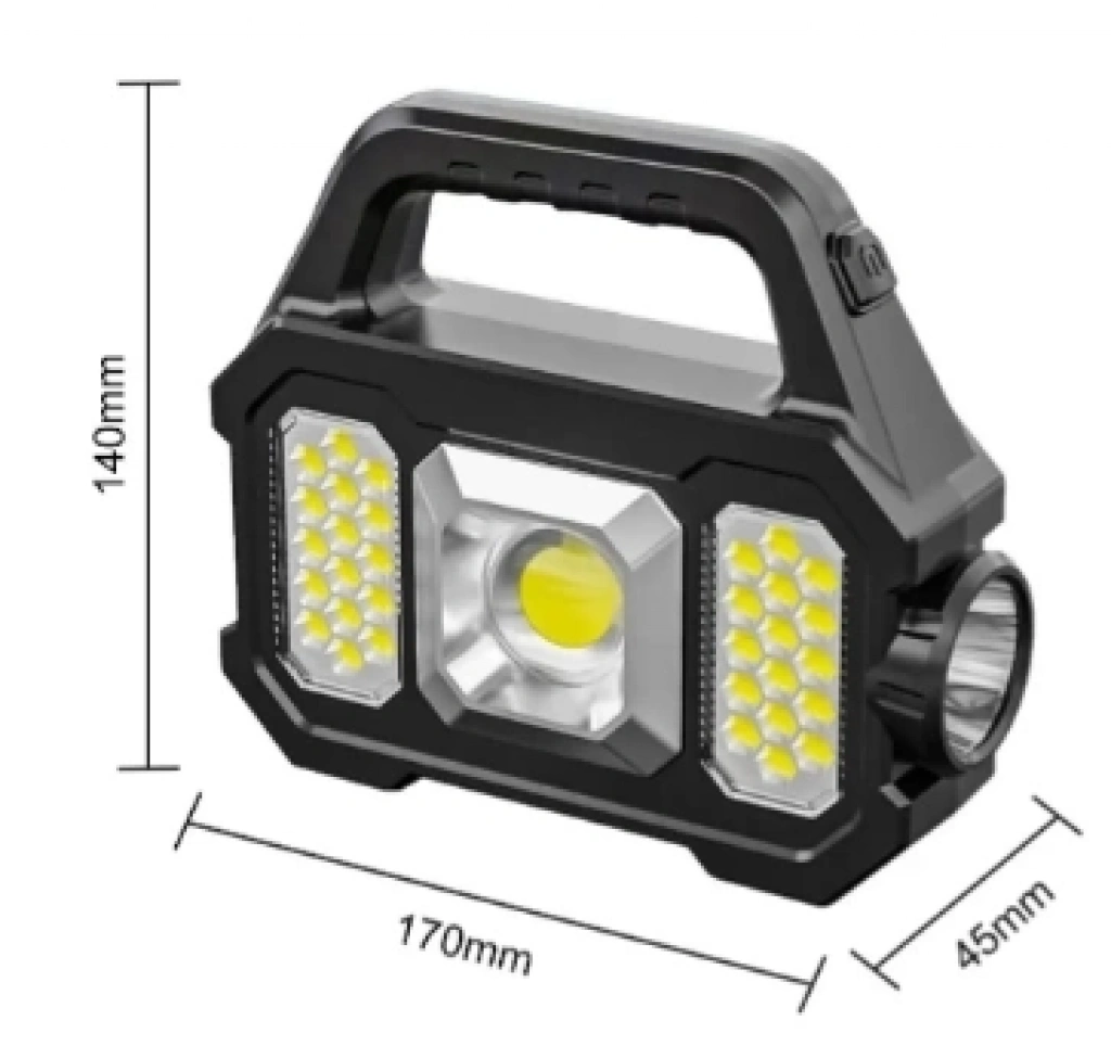 P-880A Solar Powerbanklı Şarjlı Taşınabilir Güçlü Fener