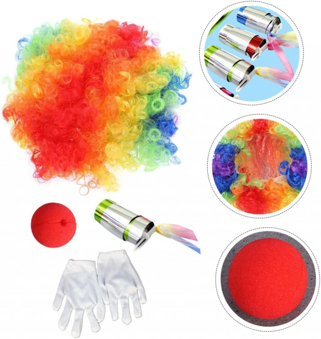 Palyaço Saç, Burun, Eldiven, Baston Seti 4'lü