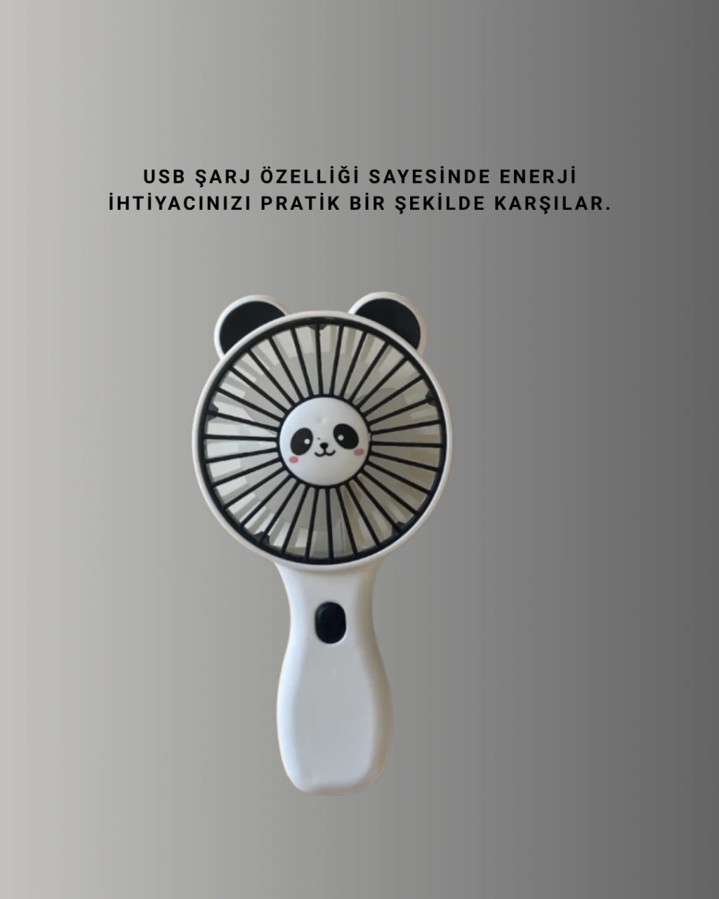 Panda Desenli USB Şarjlı Taşınabilir Mini Vantilatör