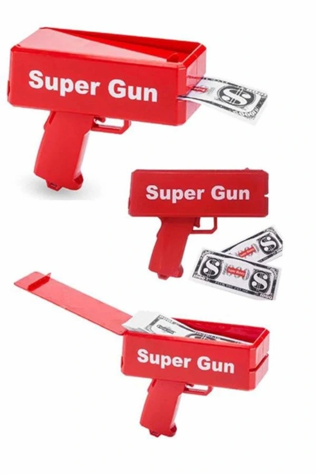 Kırmızı Parti Oyuncağı Para Saçma Fırlatma Tabancası Makinesi Super Money