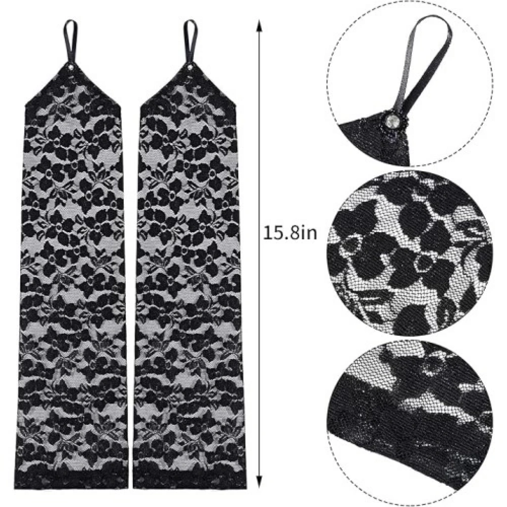 Kısa Boy Güpürlü Siyah Puantiyeli Tül Eldiven Siyah Renk