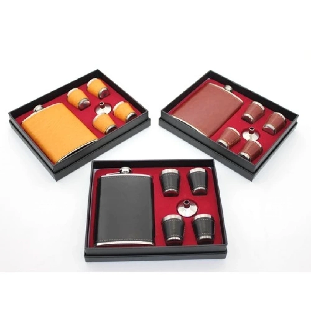 Paslanmaz Çelik 4 Shot Bardaklı Derili Matara Seti Model 1