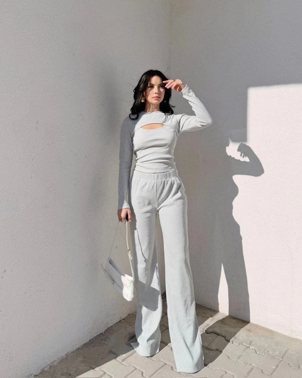 Gömlek Yaka Fitilli Salaş İkili Takım siyah T4300