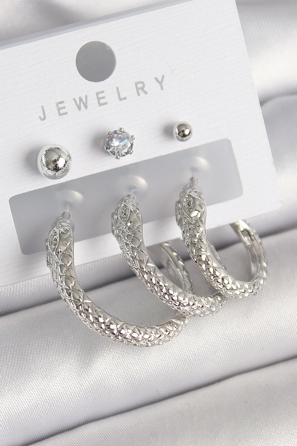 Pirinç Gümüş Renk Küpe Seti 6'lı