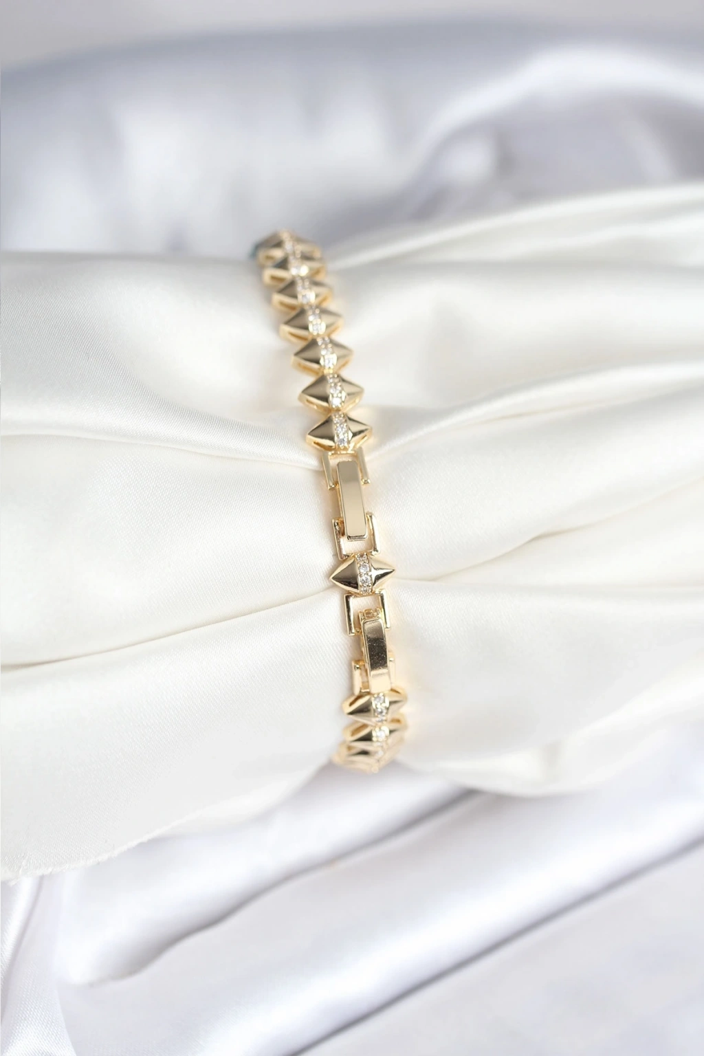 Pirinç Gold Renk Zirkon Taşlı Baklava Model Kadın Bileklik