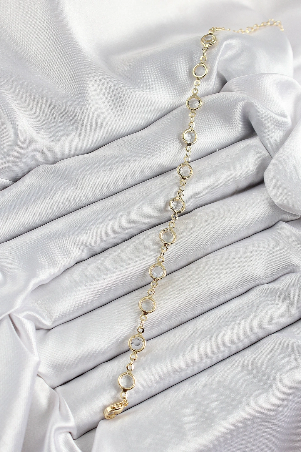Pirinç Gold Renk Zirkon Taşlı Kadın Bileklik