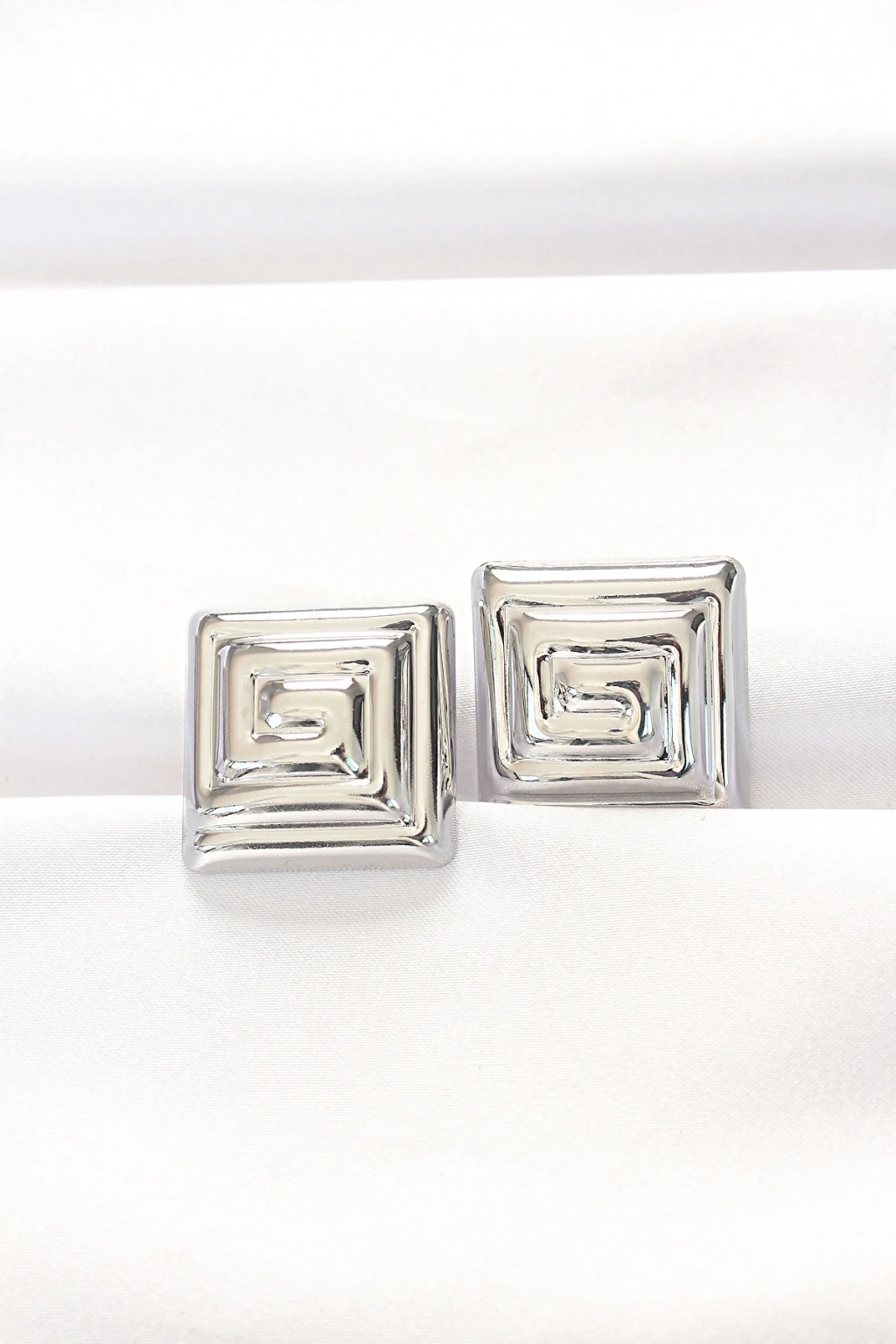 Pirinç Gümüş Renk Kare Form Küpe