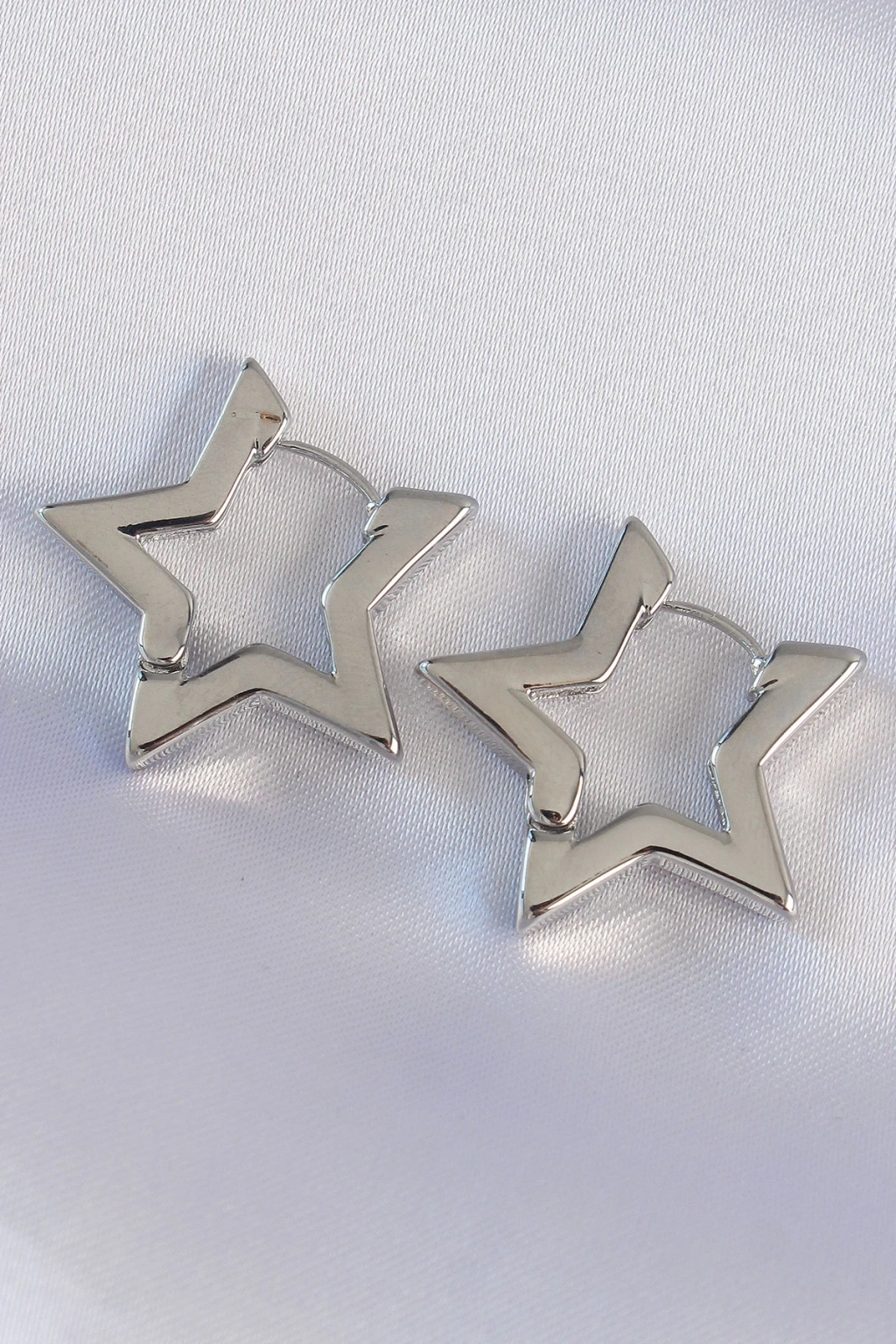 Pirinç Yıldız Model Gümüş Renk Kadın Küpe
