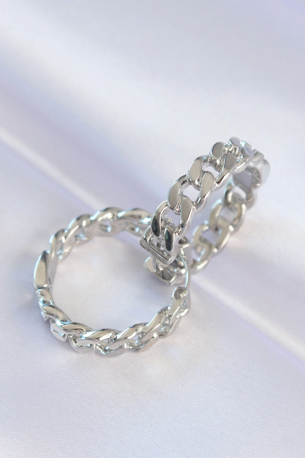 Pirinç Gümüş Renk Zincir Model Halka Küpe