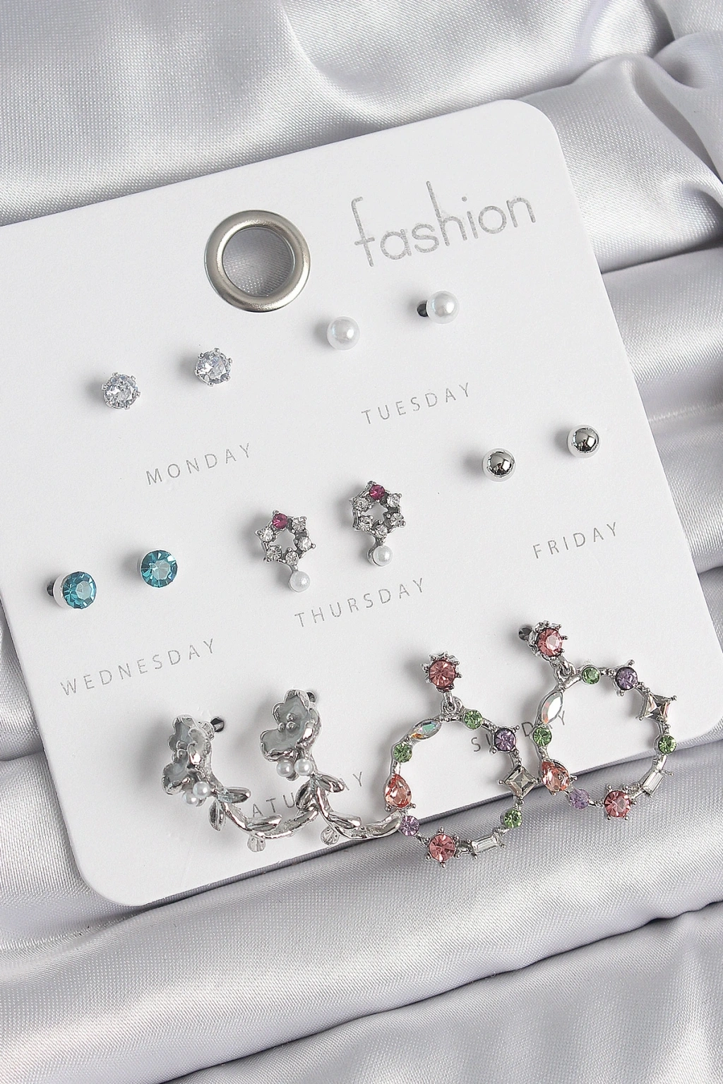 Pirinç Gümüş Renk 6 Çift Kadın Küpe Seti