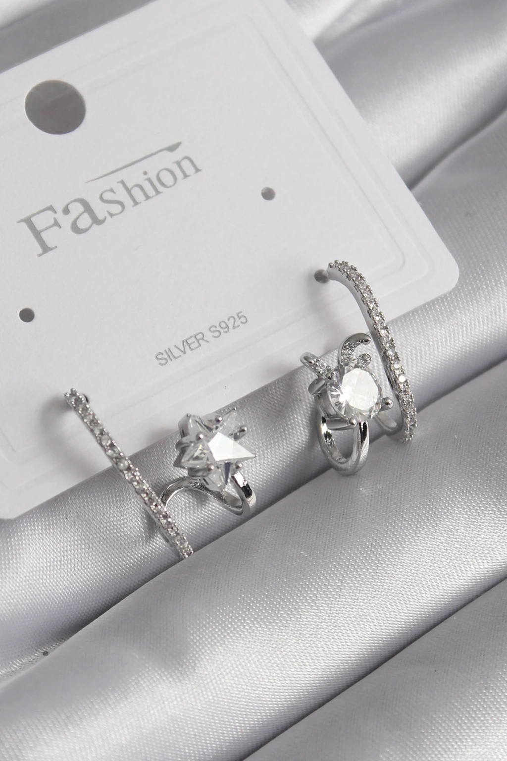 Pirinç Gümüş Renk 6'lı Kadın Küpe Seti